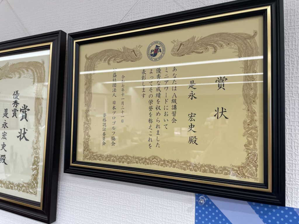 そこで私はパターのレッスンの内容でありがたいことに優秀賞を頂けました。